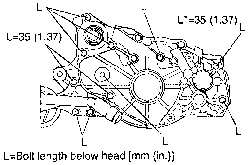 Front case assembly (all except bolt length below head): 20 - 27 Nm (200 - 270 kgs.cm, 14 - 20 ft. lbs.)
