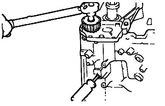 6. Insert screwdriver through plug hole in left side of cylinder block to check shaft is in position, and tighten.