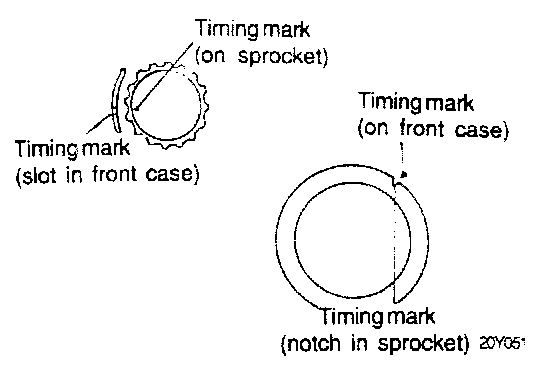 4. Align timing mark on each sprocket with corresponding timing mark on the front case.