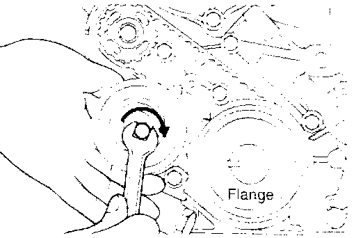 9. Install flange and crankshaft sprocket onto crankshaft. Be sure to install in the direction shown in illustration.
