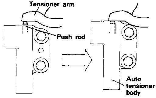 NOTE: If the clearance "A" between the tensioner arm and the auto tensioner body cannot be measured (when the engine is mounted on the vehicle, for example), the following alternative method may be used.