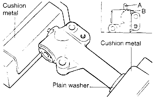2) Push in the rod slowly with the vise until the set hole "A" in the rod is aligned with set hole "B" in the cylinder.