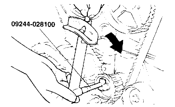 8. Loosen the right counter balance shaft sprocket mounting bolt until it can be loosened by hand.