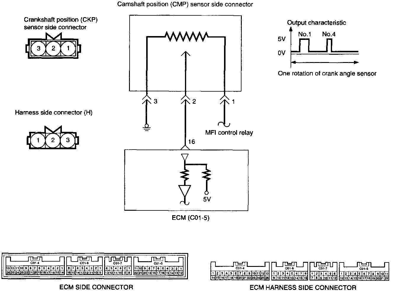 If the camshaft position sensor does not operate correctly, correct sequential injection is not made so that the engine may stall or run irregularly at idle or fail to accelerate normally