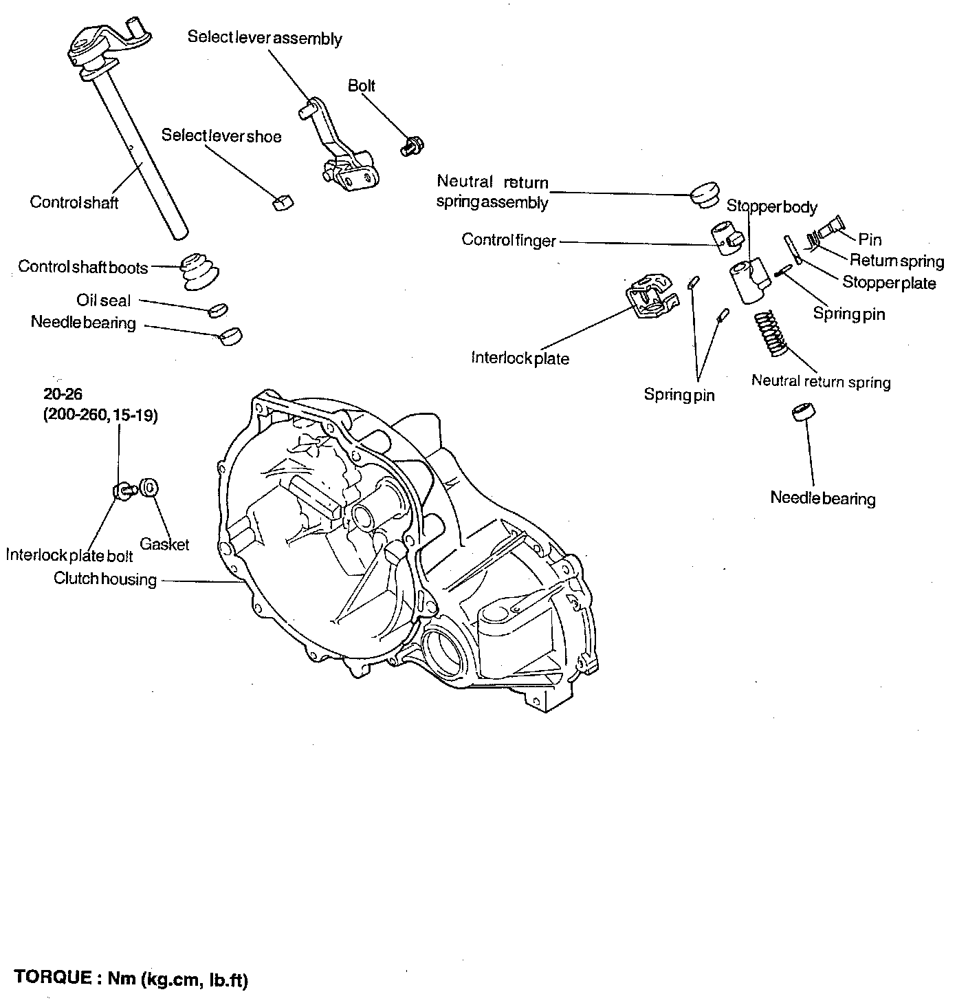 First Method: If using following procedure, replace the shifting control shaft assembly as new one. This method is recommended as removal procedures in case that the clutch housing is normal and shifting control shaft is abnormal.