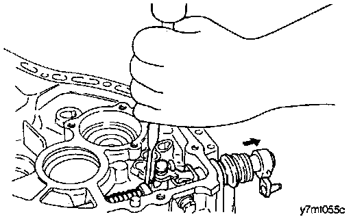 6. Remove the lock pin from the shifting control shaft by punching the bottom of the lock pin using the special tool (09414 - 11000) or equivalent.