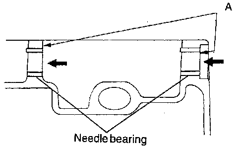 1. Install the needle bearing flush with the surface A of the clutch housing.