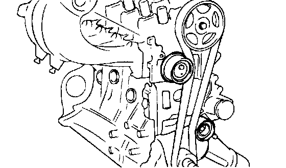 NOTE: If the timing belt is reused, make an arrow indicating the turning direction (or the front of the engine) to make sure that the belt is reinstalled in the same direction as before.