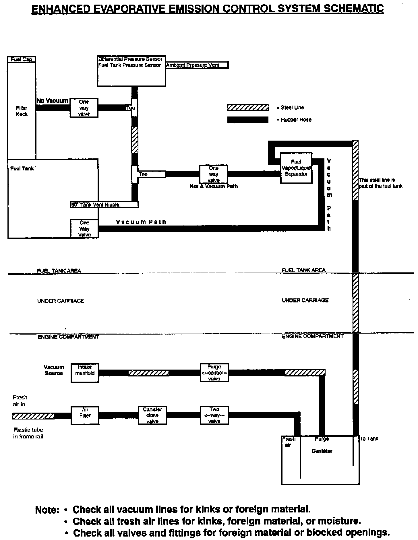 The enhanced evaporative emission system consists of the following major components (see schematic):