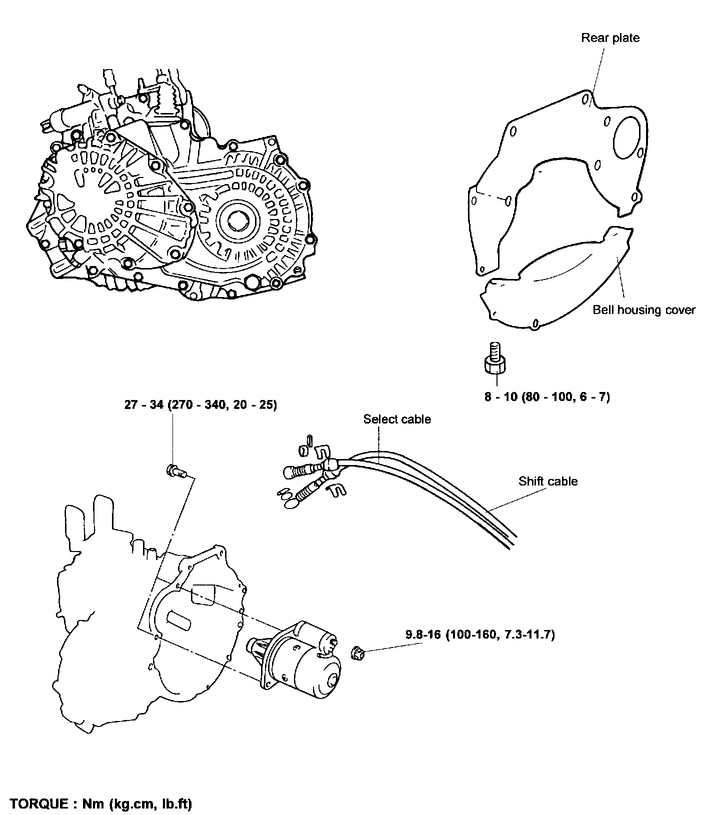 8. Remove the select cable and shift cable.