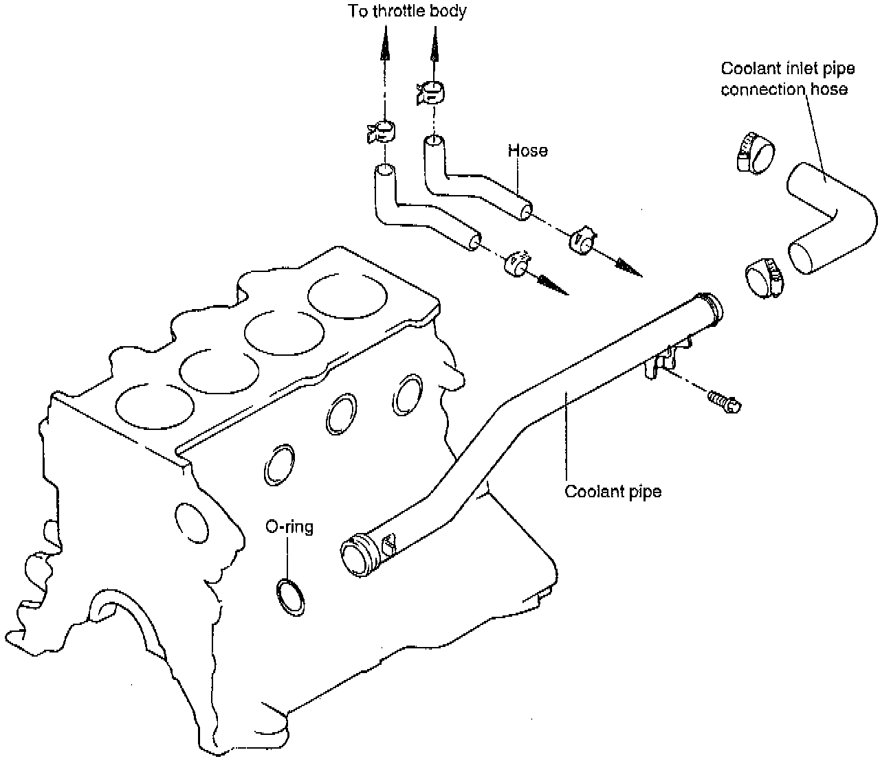 Fit the O-ring in the groove provided at the coolant inlet pipe end, wet the O-ring with coolant and insert the coolant inlet pipe.