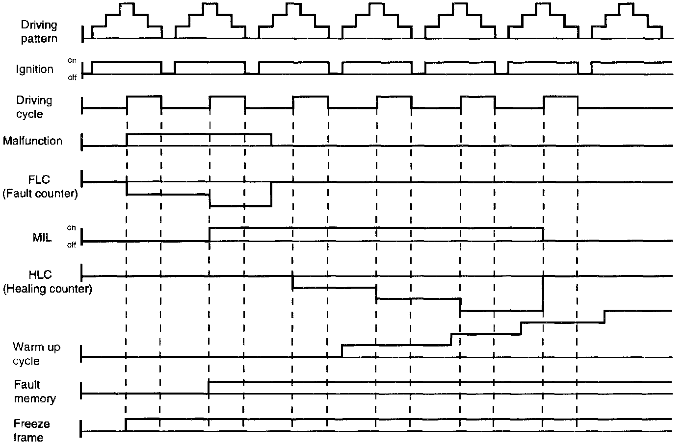 1. When the same malfunction is detected and maintained during two sequential driving cycles, MIL will automatically light.