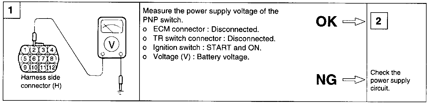 If the park/neutral position switch harness check is normal but the park/neutral position switch output is abnormal, check the control cable adjustment.