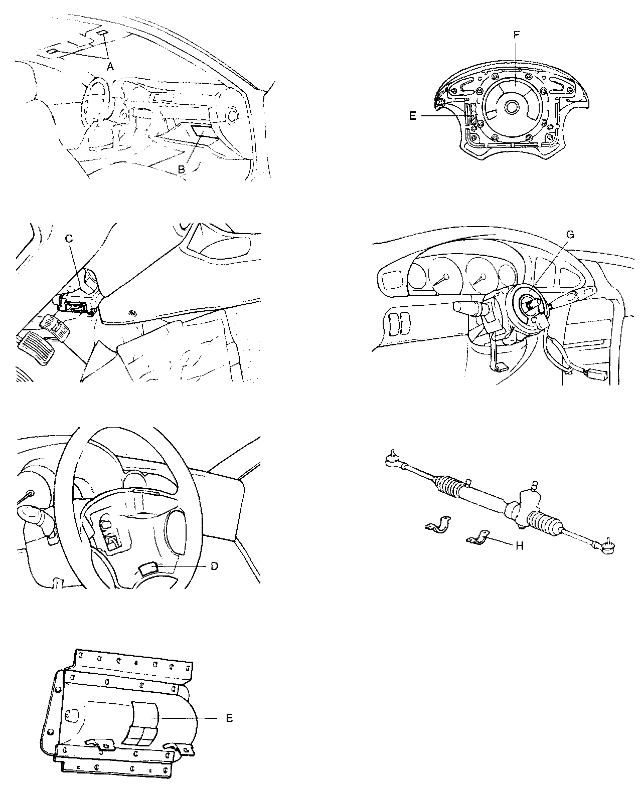 A number of caution labels relating to the SRS are found in the vehicle, as shown in the following illustration. Follow label instructions when servicing SRS.