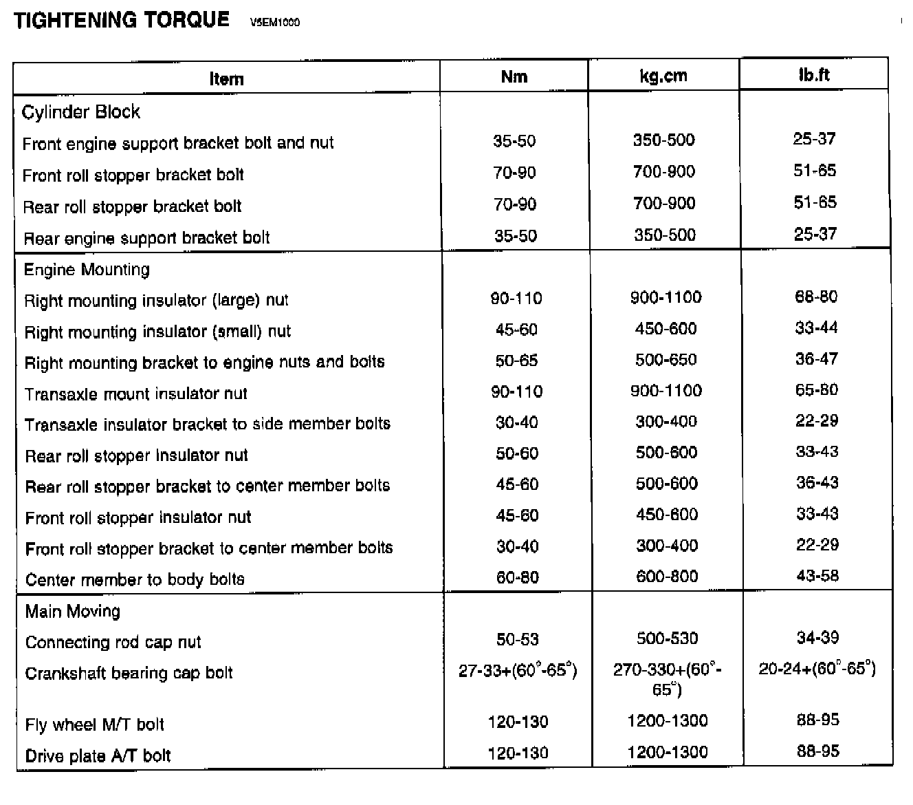 Crankshaft Pulley Bolt - 170-180 Nm (1700-1800 kg. cm, 125-133 ft. lbs.)