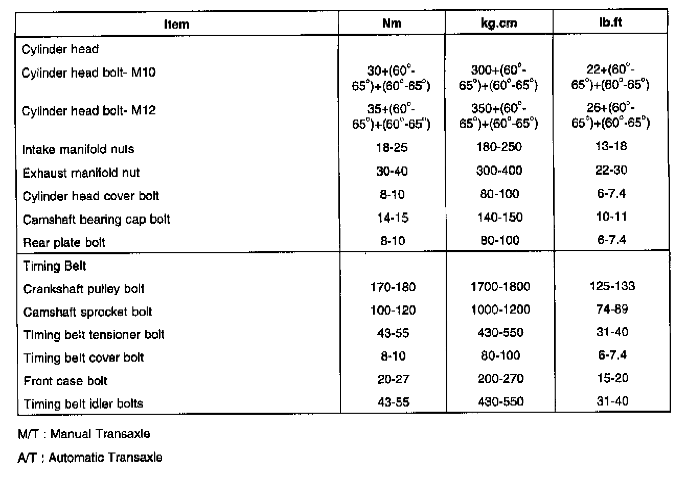 Timing Belt Tensioner Bolt - 43-55 Nm (430-550 kg. cm, 31-40 ft. lbs.)
