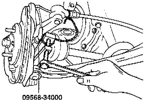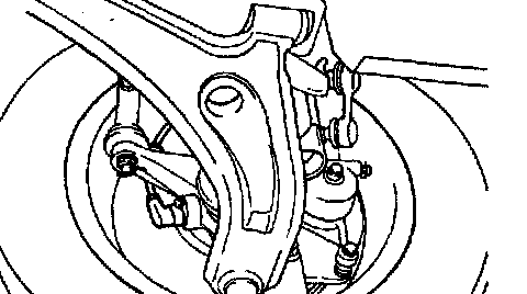 NOTE: Brake hose does not need to be disconnected from brake calliper. Be careful not to depress brake pedal, or piston will pop out.