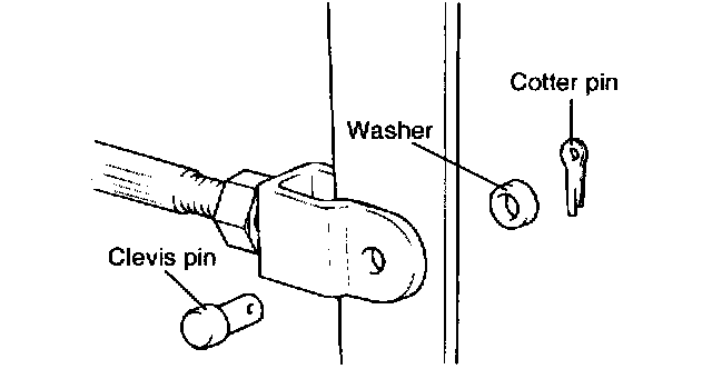1. Remove the cotter pin, washer and clevis pin.