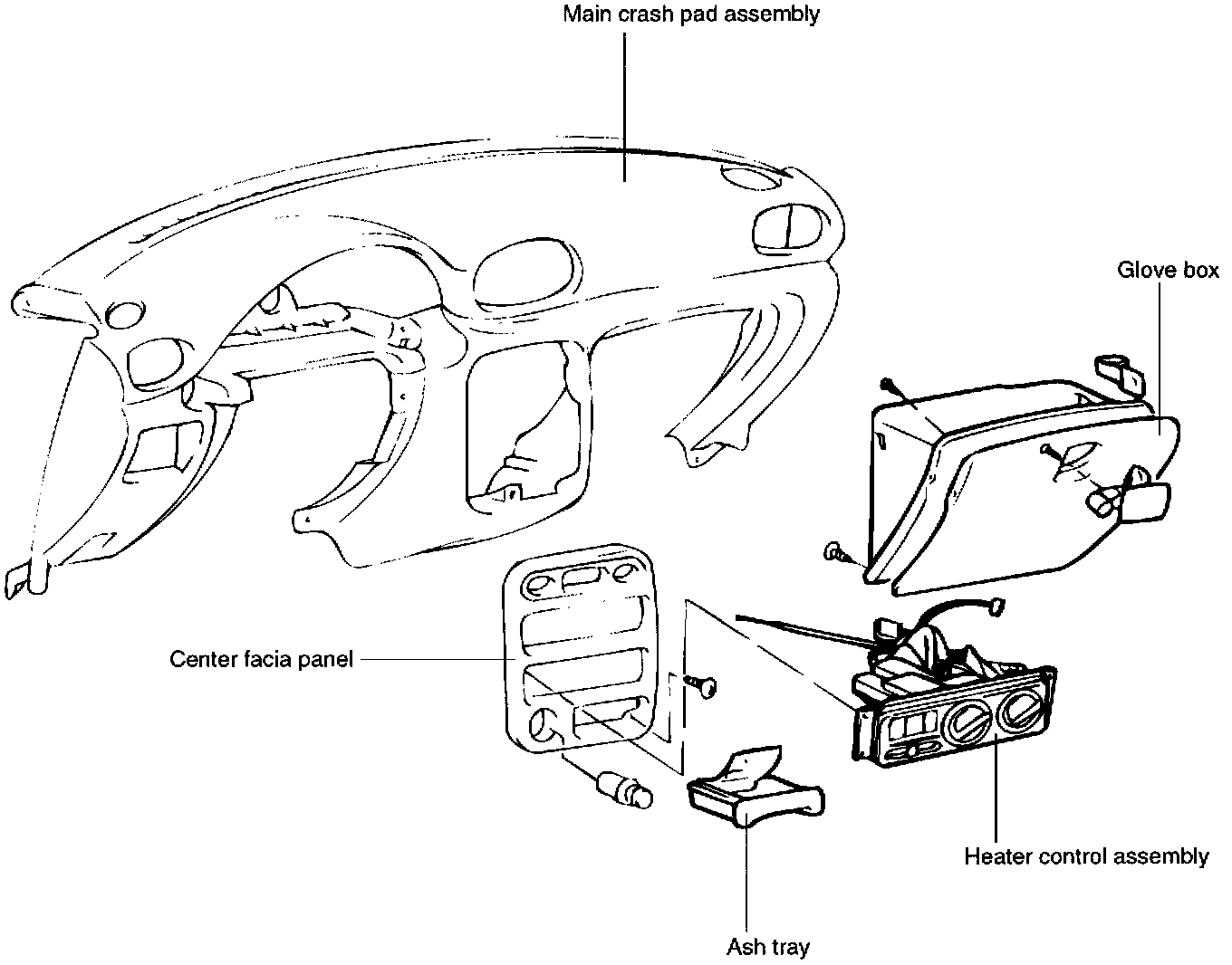 5. Remove four mounting bolts of the heater control assembly from behind the center facia panel and then remove the center facia panel.