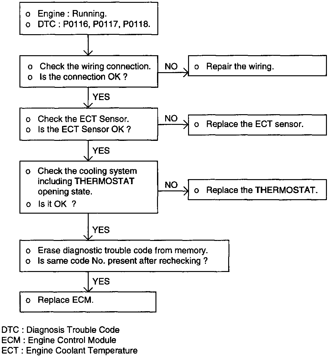 If the fast idle speed is not high enough or the engine gives off dark smoke during the engine warm-up operation, it might be caused by the engine coolant temperature sensor.