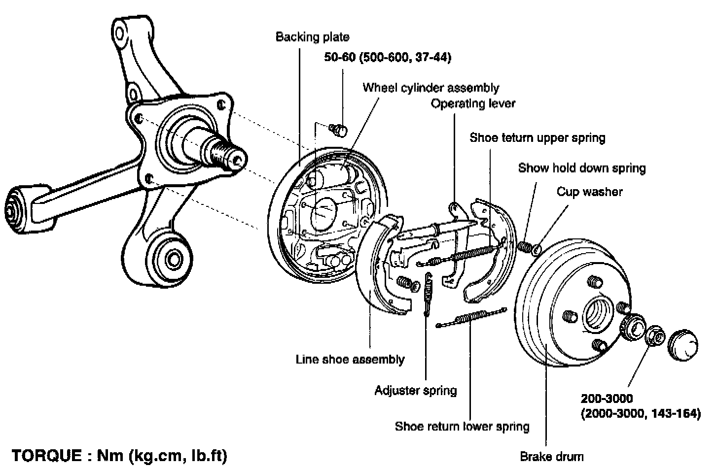 4. After assembling the drum components, pull the parking brake lever all the way up several times.