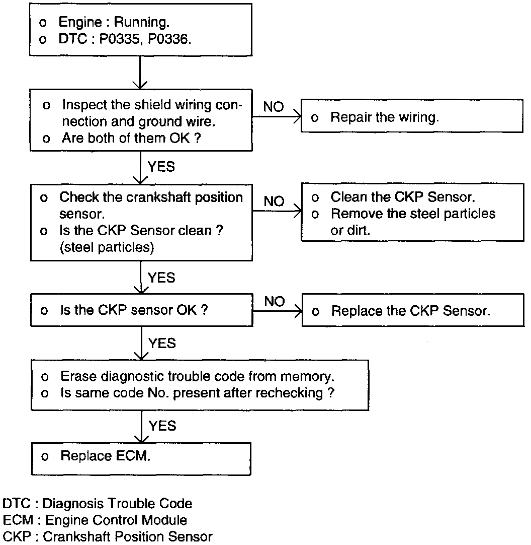 4. Engine can be stalled when the crankshaft position sensor cable is close to the high voltage cable due to the electronic noise caused by the high voltage induced.