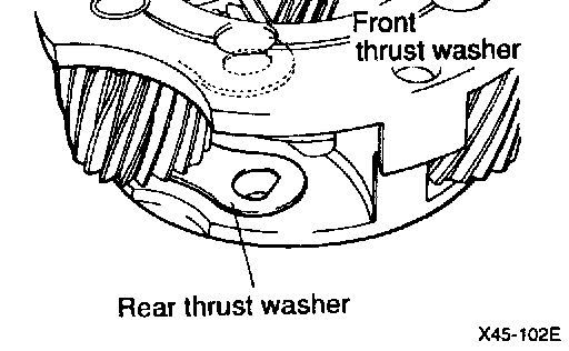3. Line up the holes in the rear thrust washer and front thrust washer with the shaft of the carrier.