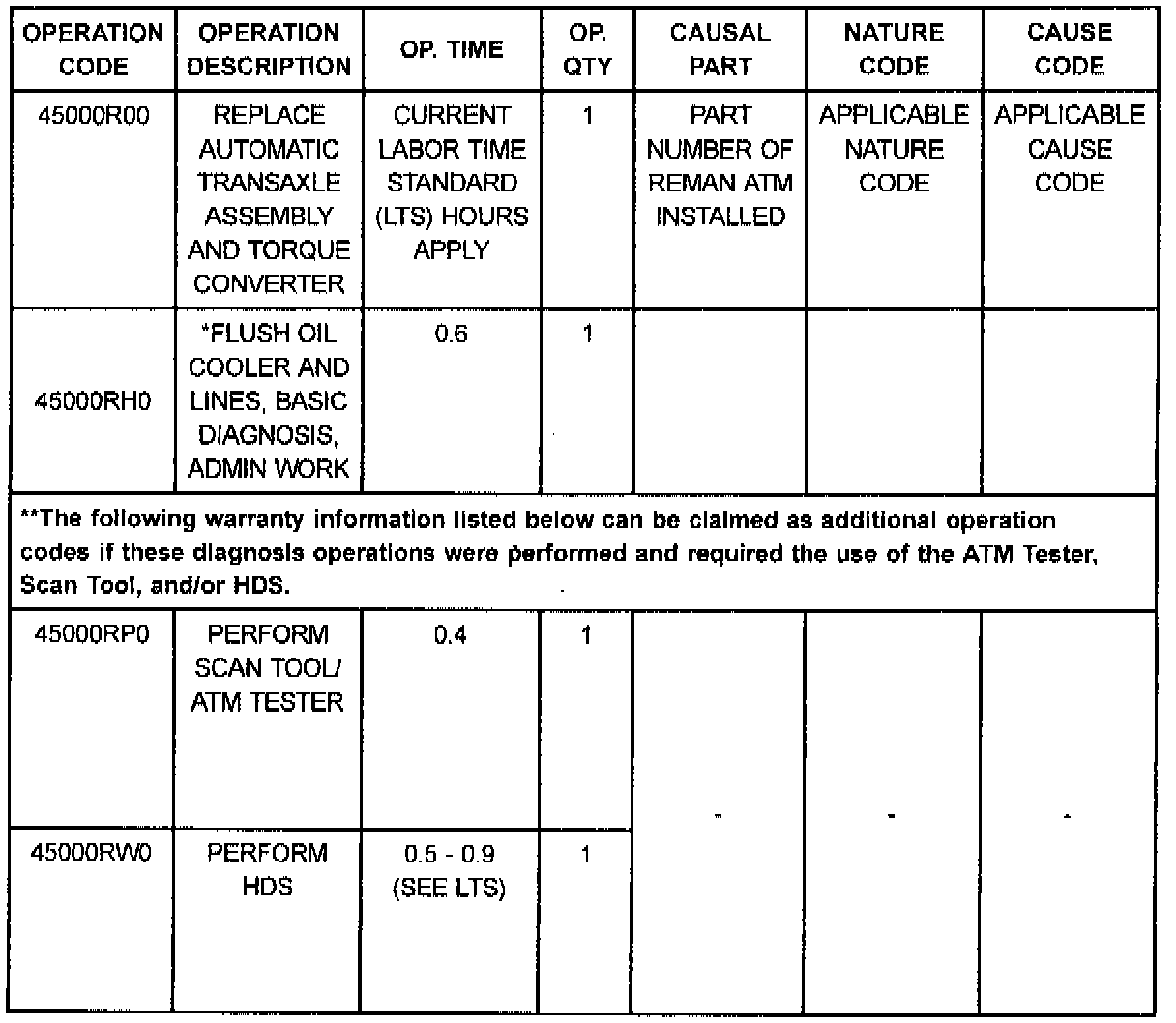 **Diagnostic before and after readings/measurements must be recorded on the ATM Diagnosis Worksheet whenever the ATM Tester, Scan Tool, or HDS is used. The Worksheet (canary copy) must be retained with the shop copy of the RO. In addition, if the HDS is used, a printout of the readings must also be retained with the shop copy of the RO.