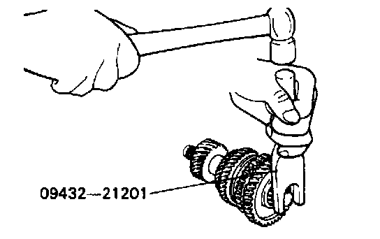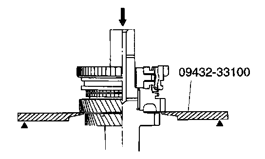 3. Remove the first-second speed synchronizer assembly and second speed gear, needle roller bearing together using the special tool (09432-33100).
