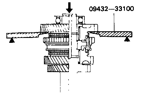 2. Remove the taper roller bearing, first speed gear and bearing sleeve, and needle roller bearing using the special tool (09432-33100).