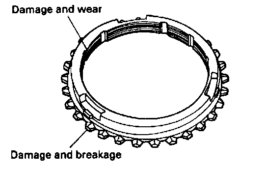 3. Check for wear of the hub end surfaces (in contact with each speed gear).