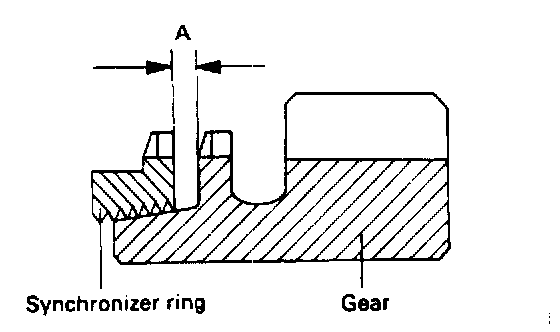 3. Force the synchronizer ring toward the clutch gear and check clearance "A". Replace if it is out of specification.