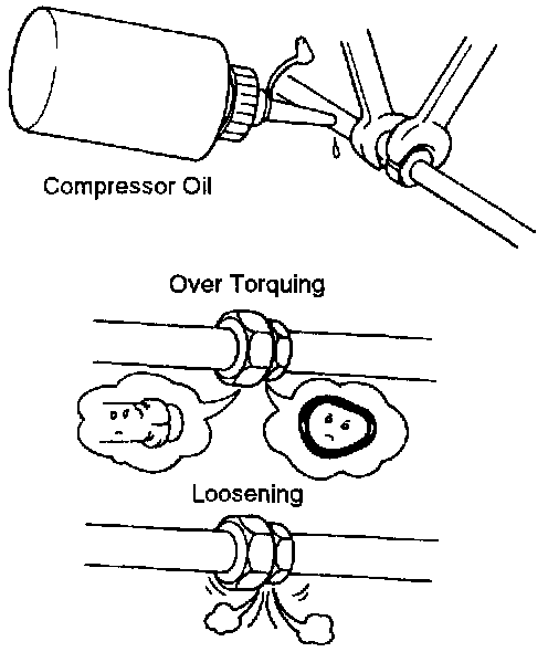 1. Lubricate O-ring fittings with compressor oil for easy tightening and to prevent leaking of refrigerant gas.