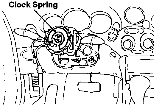 The clock spring (coil spring) consists of two current carrying coils. It is attached between the steering column and the steering wheel. It allows rotation of the steering wheel while maintaining continuous contact of the deployment loop through the inflator module.