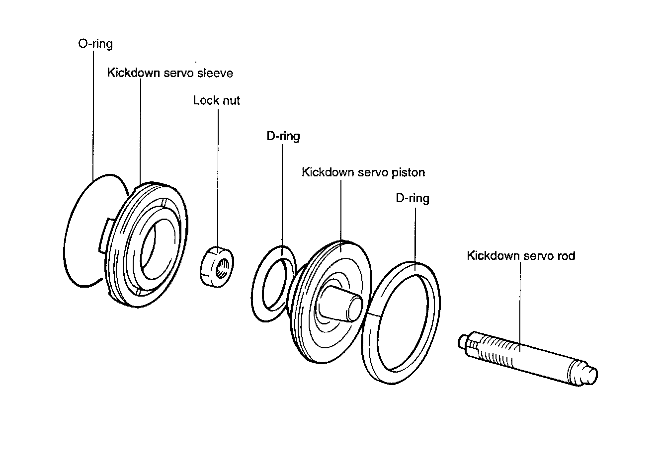 1. Install the rod and nut to the kickdown servo piston.