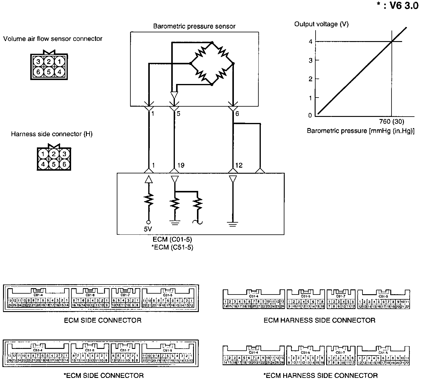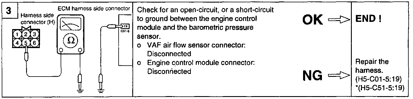 The ECM uses this signal to compute the altitude at which the vehicle is operating and corrects the air-fuel ratio and the ignition timing, thus improving driveability at high altitude.