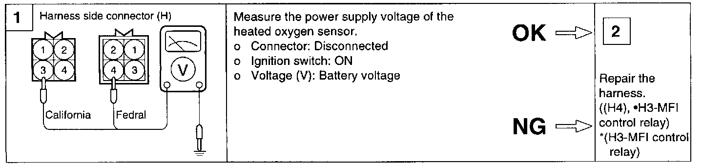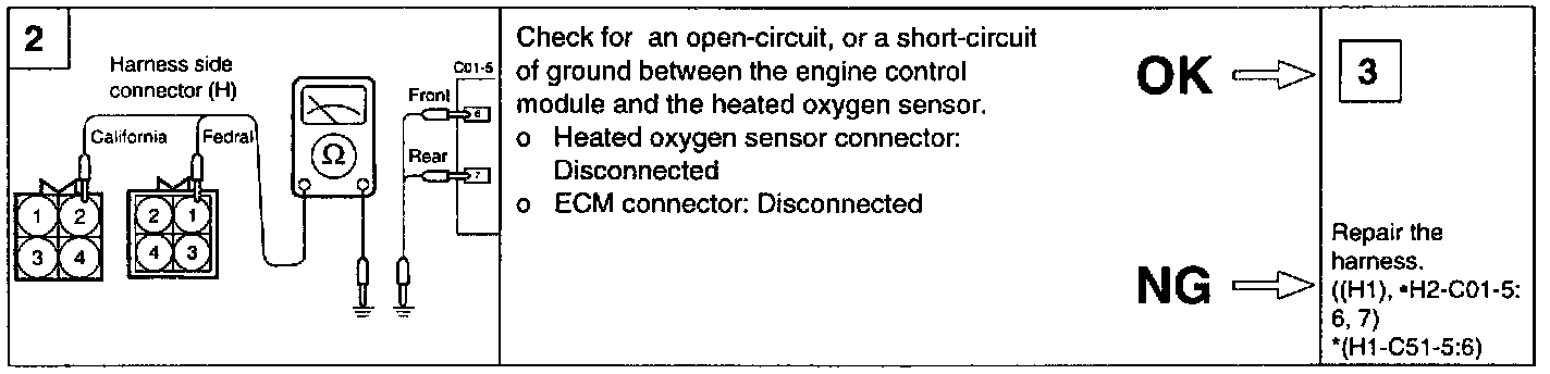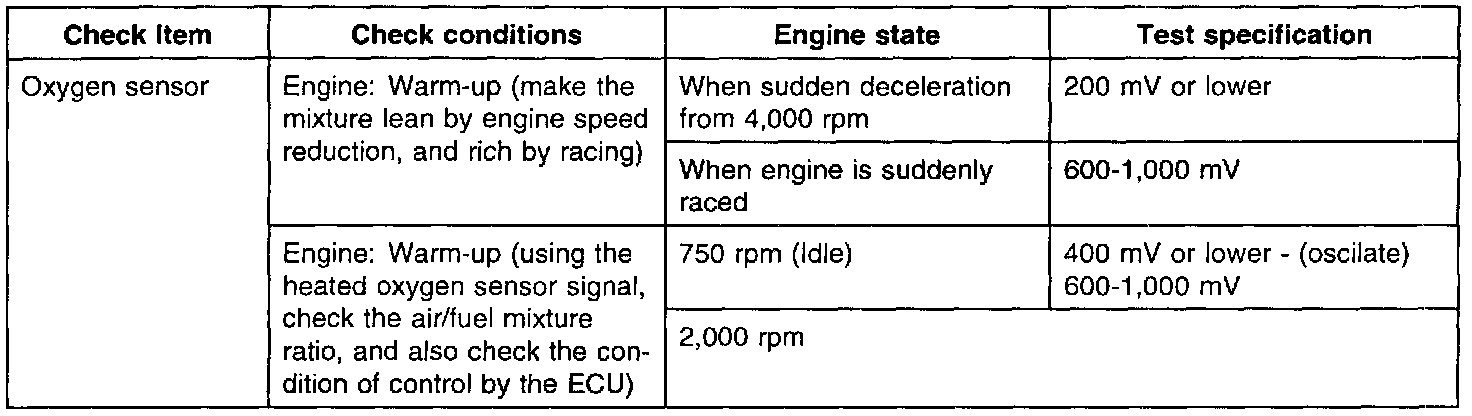 2. If the HO2S check results were normal, but the sensor output voltage is out of specification, check for the following items (related to air fuel ratio control system):