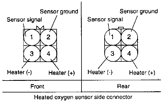 1. Disconnect the oxygen sensor connector, and measure the resistance between terminal 3 and terminal 4.