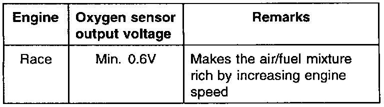 5. While repeatedly racing the engine, measure the oxygen sensor output voltage.