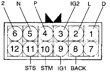 Check that there Os continuity between connector terminals 10 and 11 when the shift lever is moved to the "N" range.