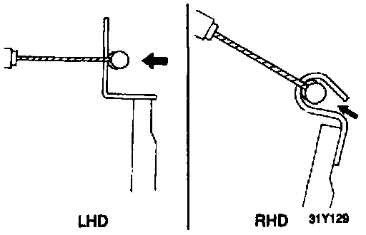 3. Securely install the resin bushing of the accelerator cable on the end of the accelerator arm.