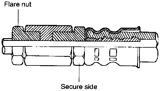 5. To connect the high pressure hose to the fuel pump, temporarily tighten the flare nut by hand, and then tighten it to the specified torque. Be careful that the fuel hose does not twist.
