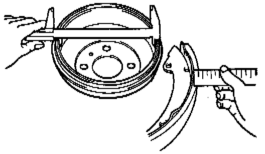 2. Measure the brake shoe lining thickness.