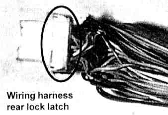 2. Fasten the rear lock latch on the wiring harness to the latch of the cable connector cover end.