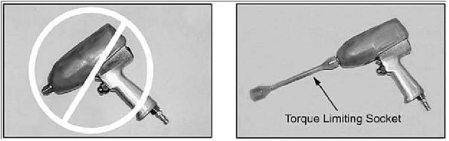 Do not use an air impact tool for wheel lug nut installation without the applicable torque limiting socket.