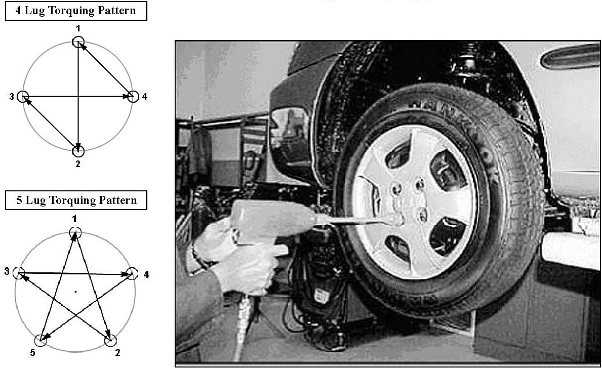 1. Follow the wheel lug nut torquing pattern as shown.