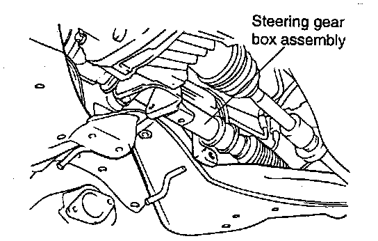 6. To remove the crossmember, remove steering gear box mounting bolts, and then support the steering gear and linkage on the vehicle side as illustration.