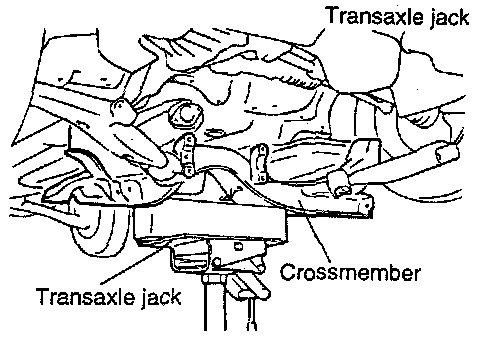 1. Install the crossmember while supporting it with a transaxle jack.
