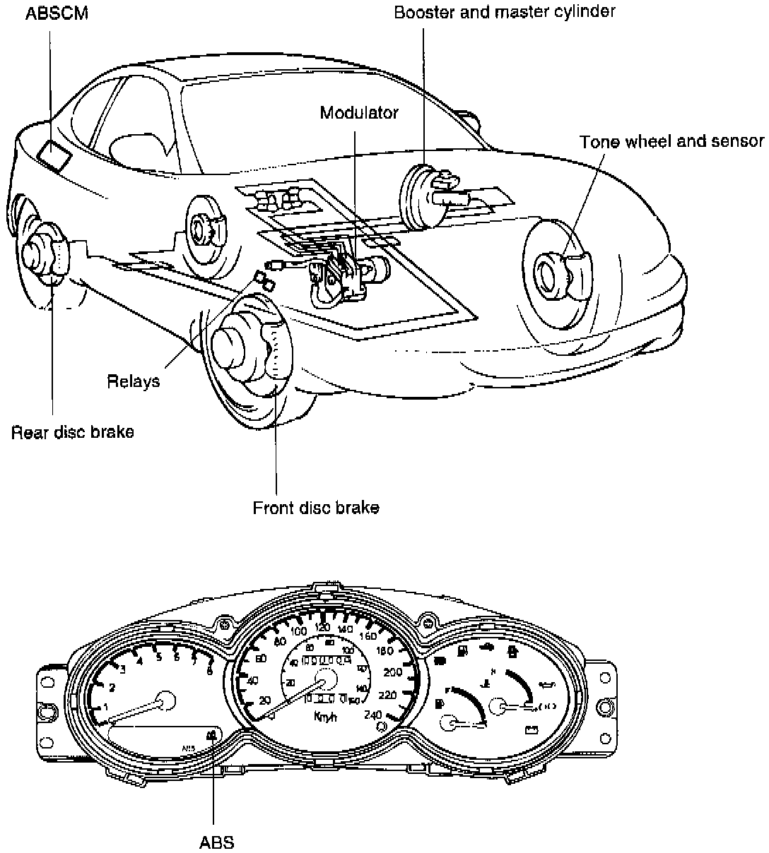 The Anti-Lock Brake System (ABS) controls the hydraulic brake pressure of all four wheels during sudden braking and braking on hazardous road surfaces, preventing the wheels from locking. The ABS provides the following benefits: