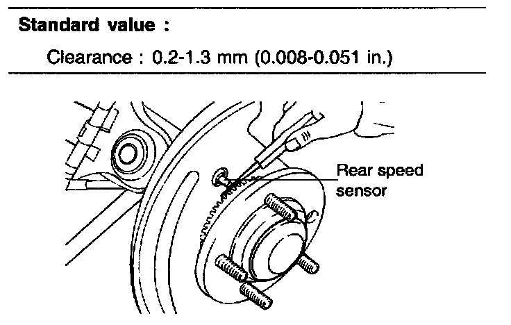 Standard value: Clearance 0.2 - 1.3 mm (0.008 - 0.051 inch)